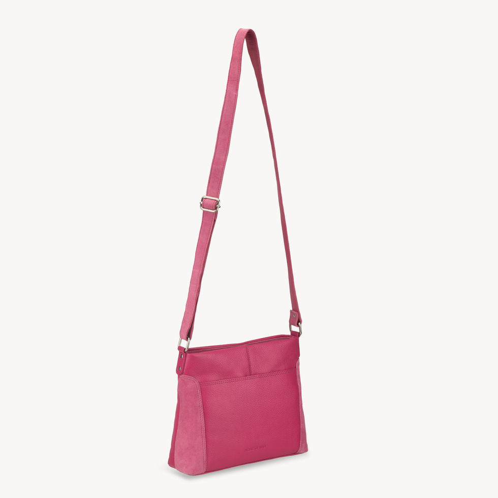 Indulge in the exclusive Sakura Sling in Suede Blossom Dream, a vivid fuschia pink shade enhanced by luxurious suede trims on the strap and bag. This special edition piece combines the playful energy of fuschia with the soft, tactile beauty of suede, creating a true collector’s item.